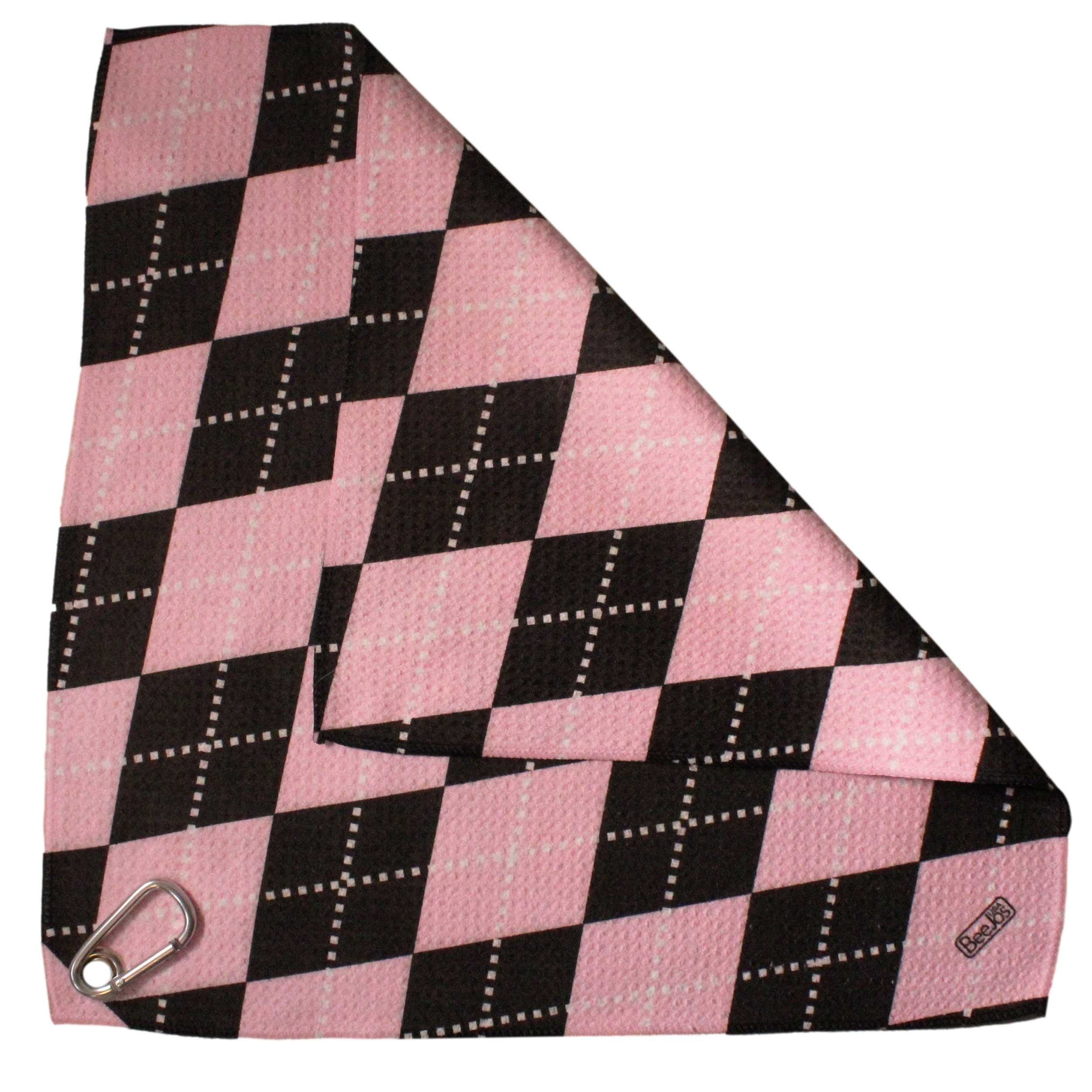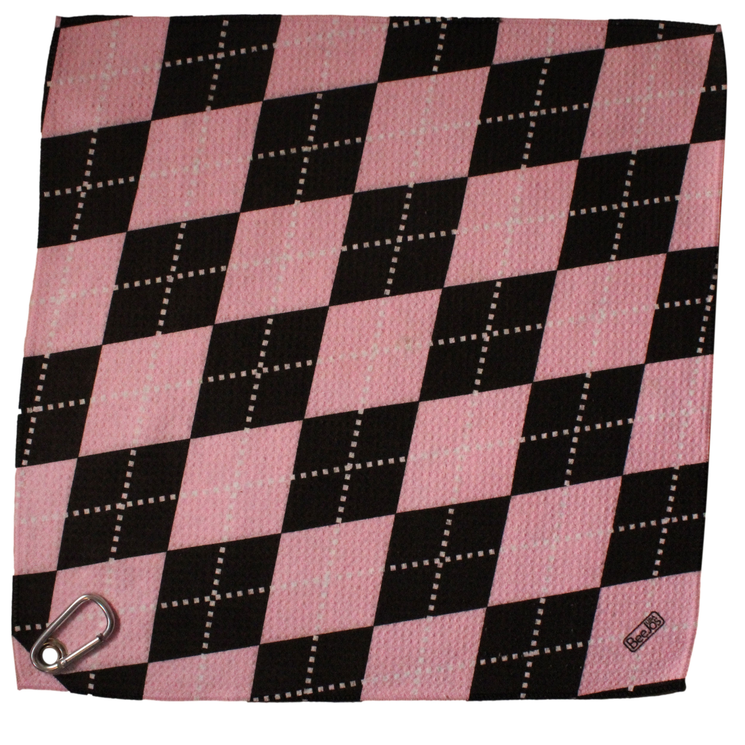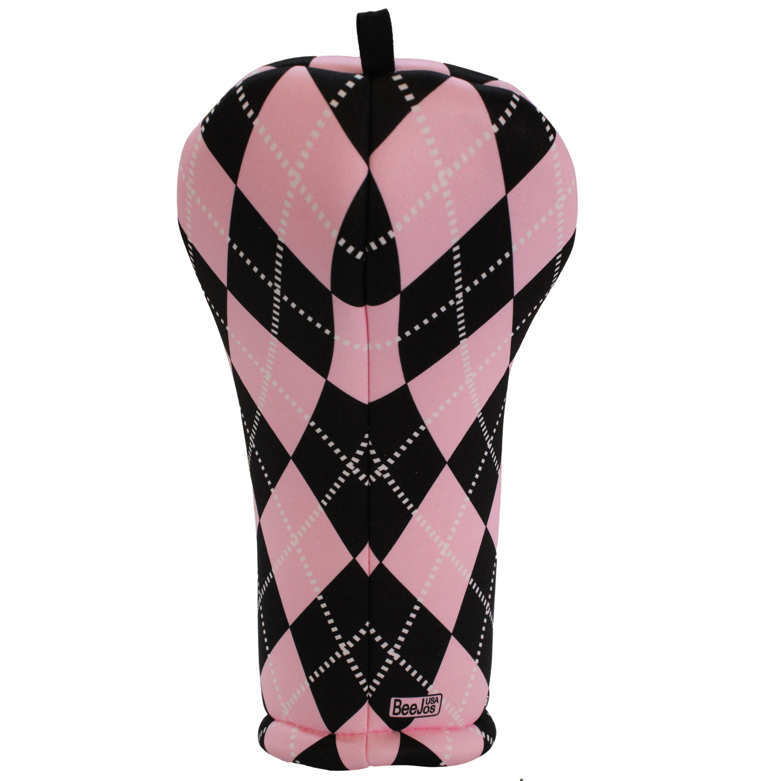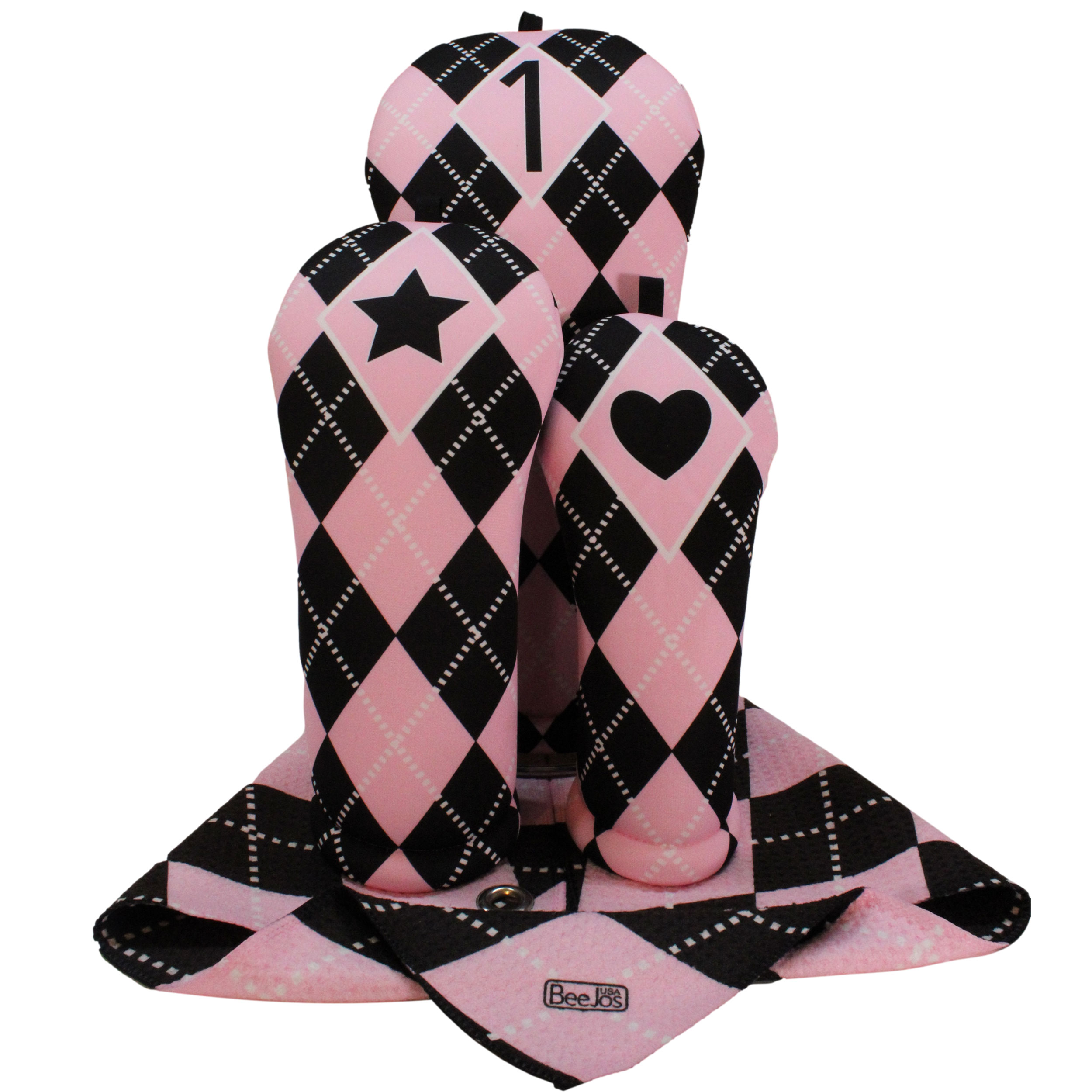 4 Piece Golf Gift Set-Women’s Collection Classic Baby Pink & Black Argyle | BeeJo’s Golf 3 Headcovers & Microfiber Towel