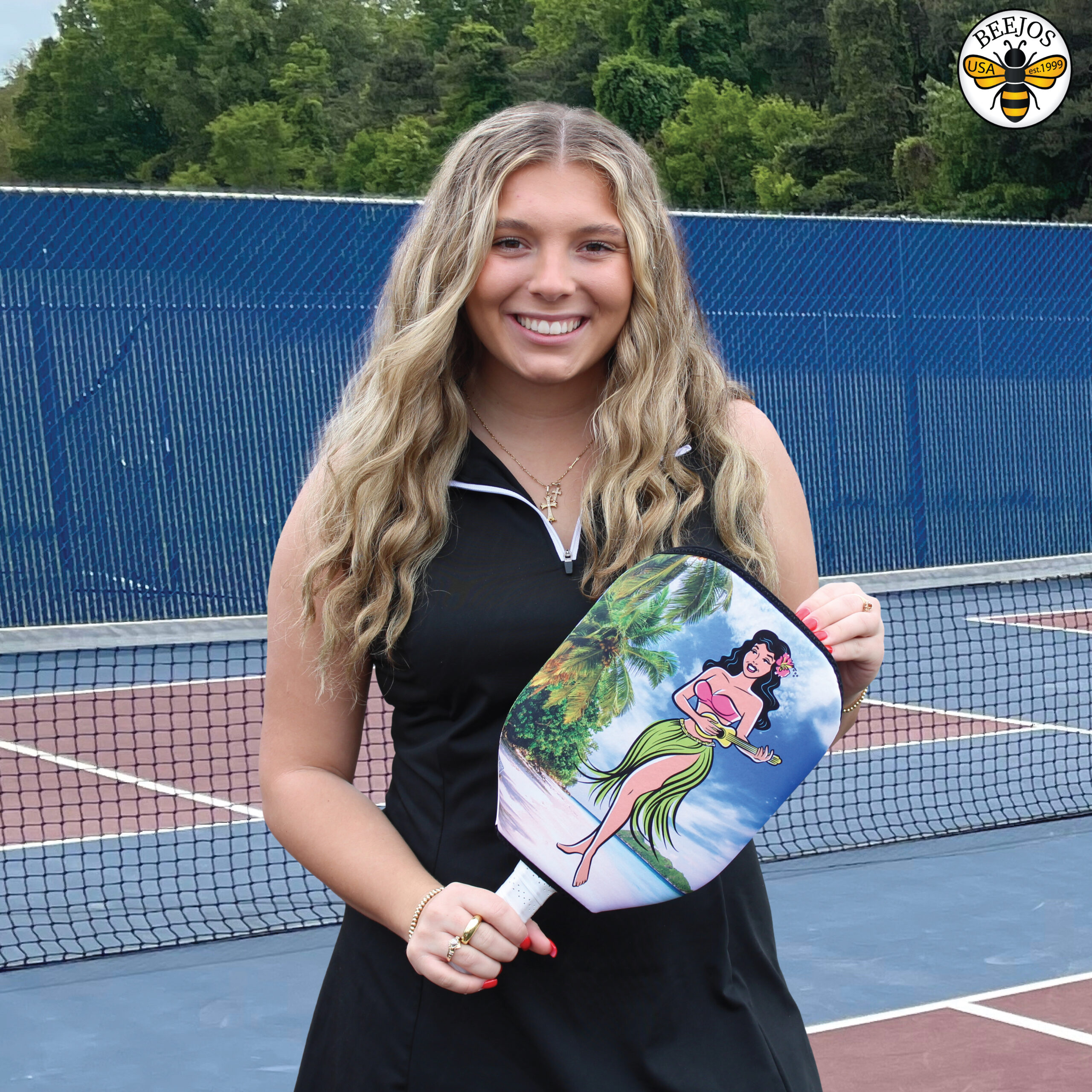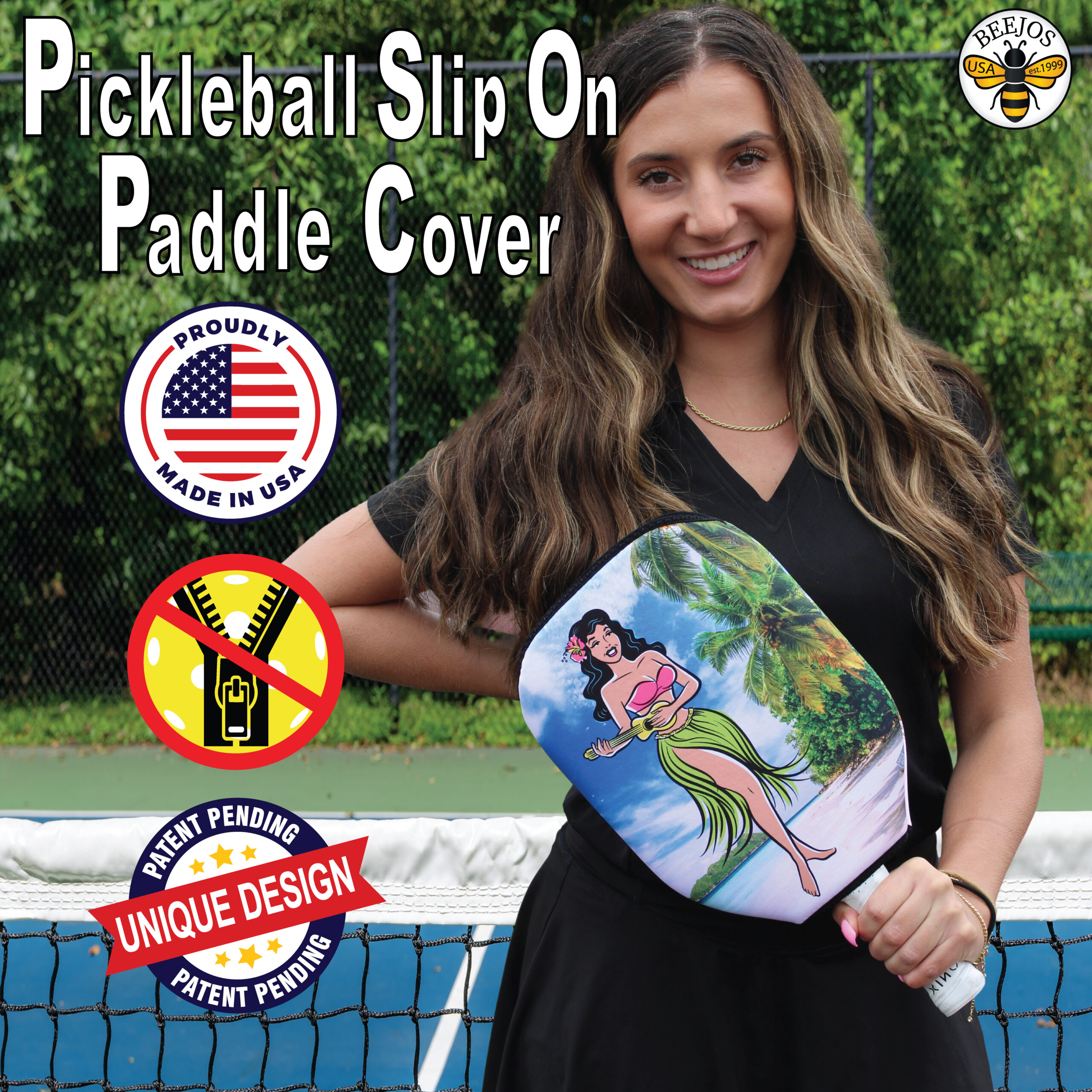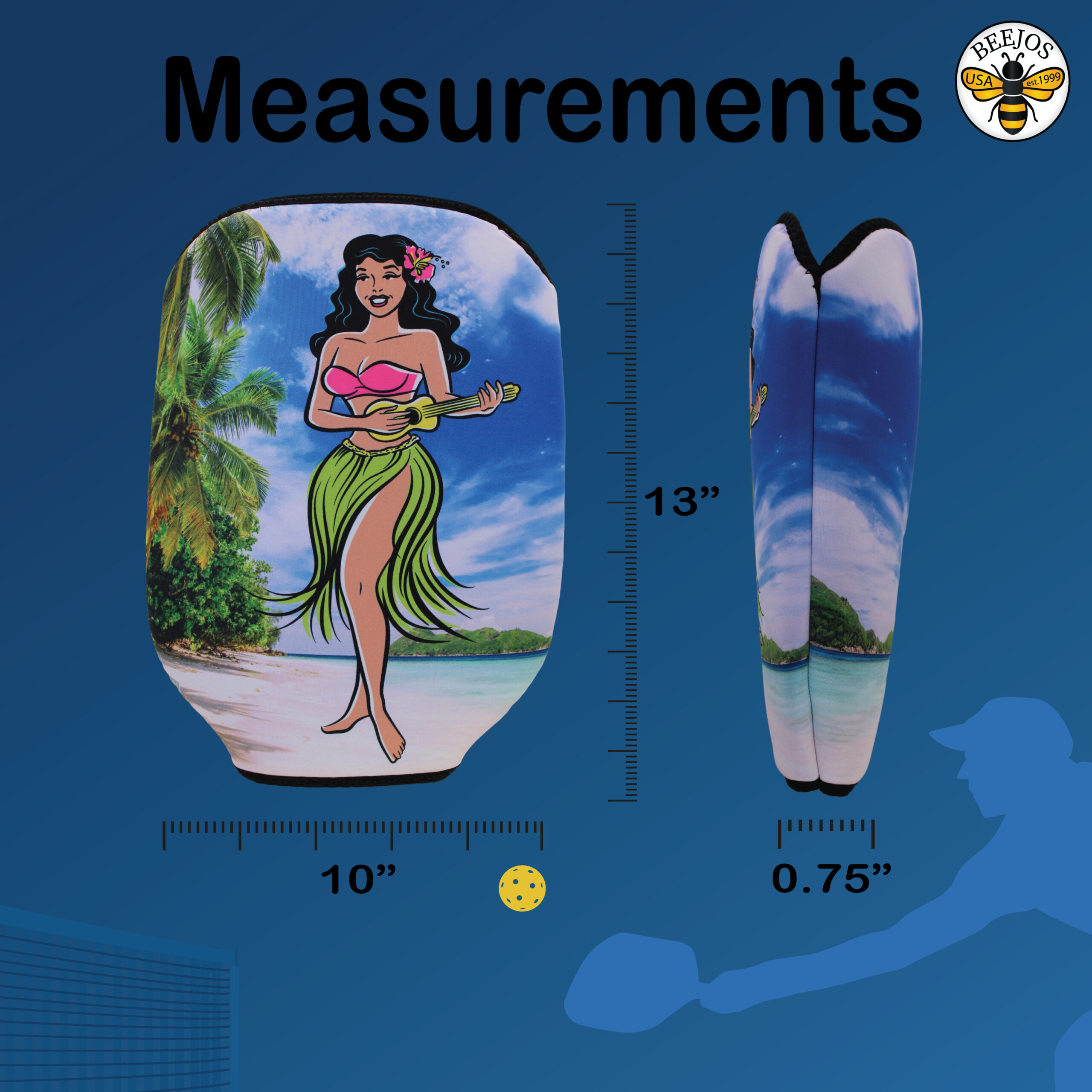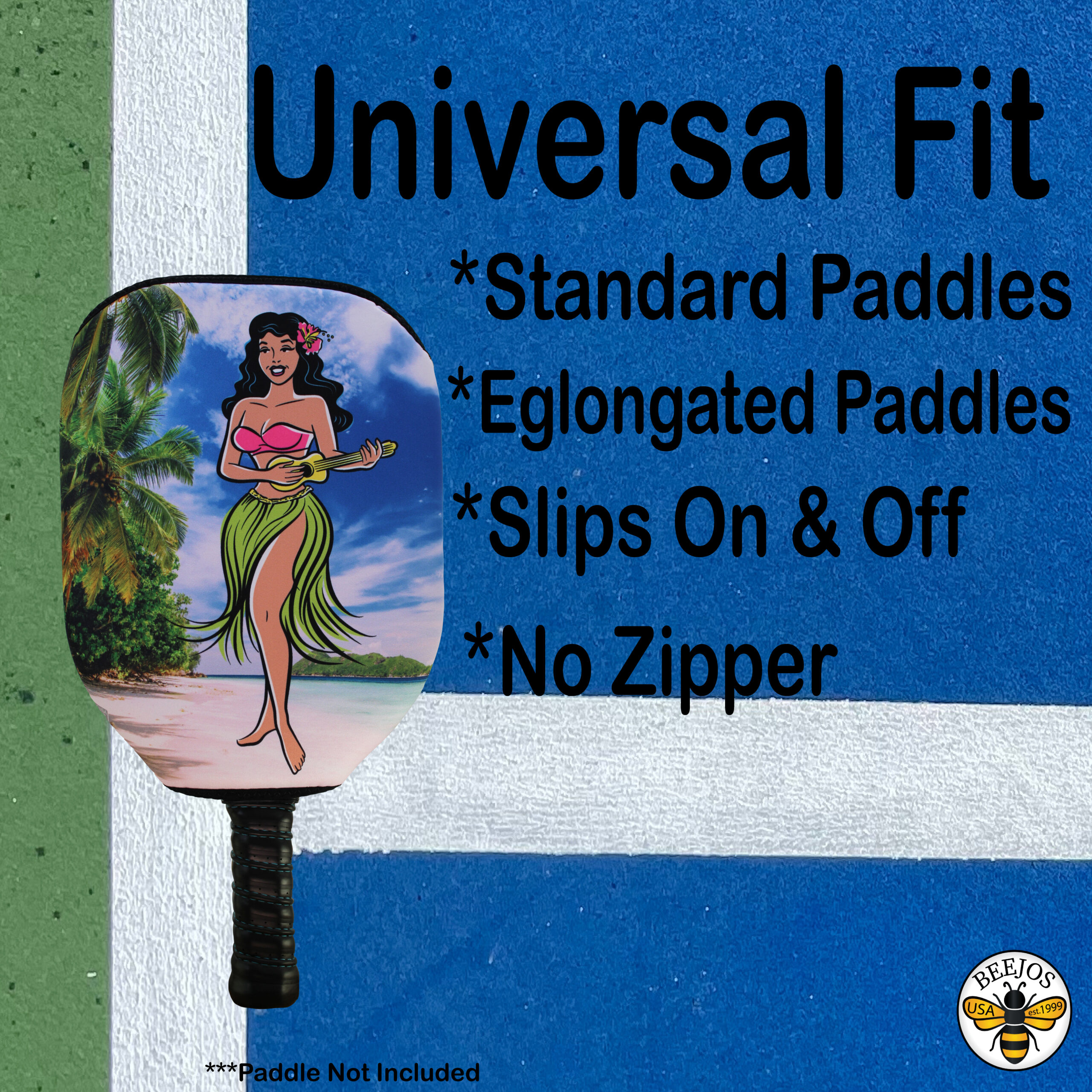 Introducing the Ultimate Pickleball Paddle Cover by BeeJo’s Sports. Our Hawaiian Hula Girl Pickleball Paddle Covers – is the game-changing accessory for protecting and enhancing your pickleball paddle! Crafted with precision and designed for convenience, this slip-on pickleball paddle cover is engineered to meet the needs of both casual players and serious pickleball enthusiasts.
