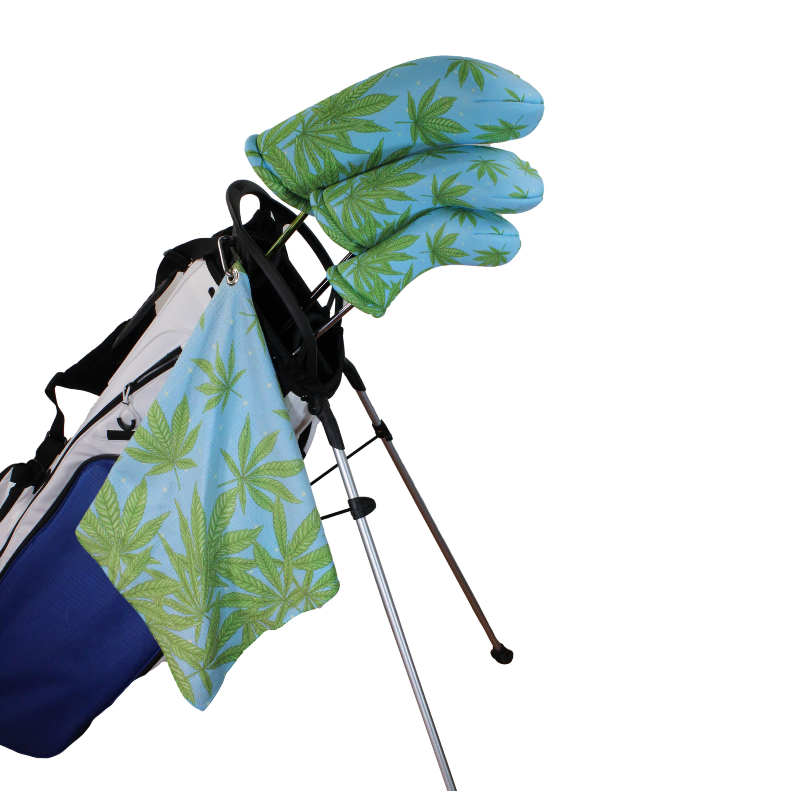 Be the first to review “Light Blue Marijuana Golf Gift-Set | 3 Golf Club Headcovers & Matching Microfiber Towel”