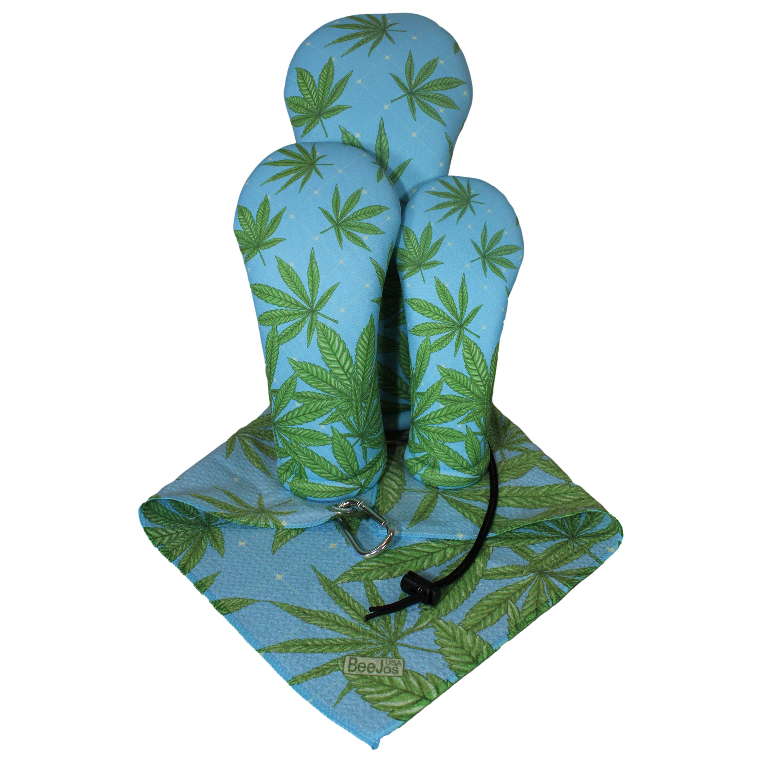 Light Blue Marijuana Golf Gift-Set | 3 Golf Club Headcovers & Matching Microfiber Towel