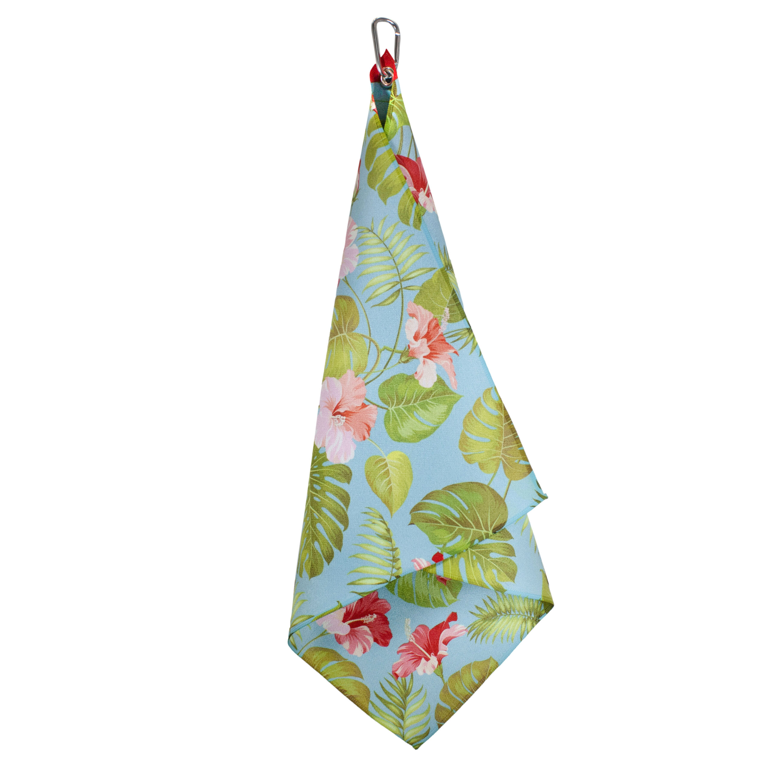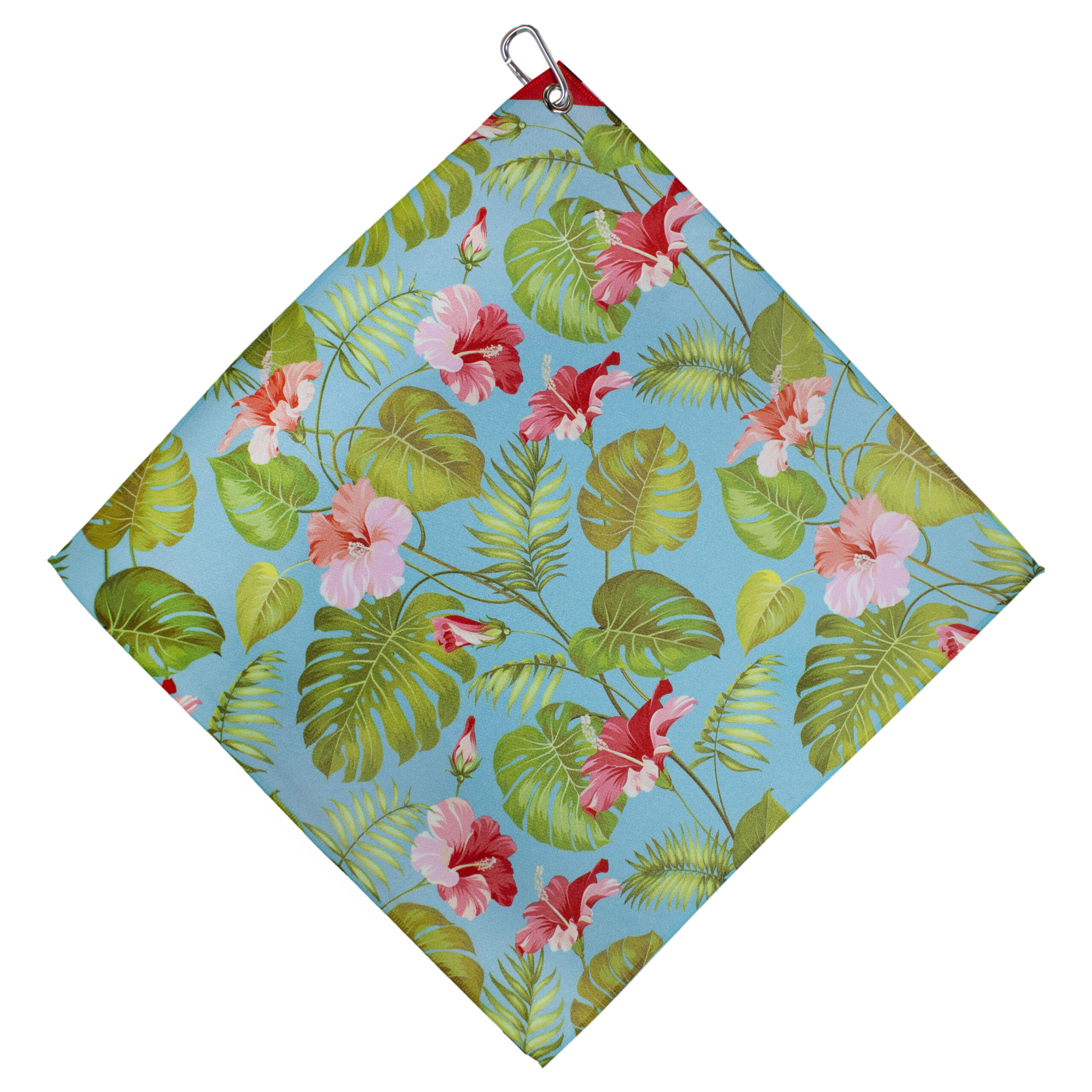 Microfiber 18” X 18” Golf Towel with Carabiner Clip | Hawaiian Collection | Light Blue Flowers